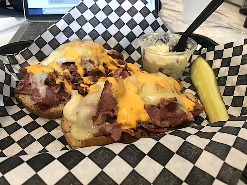 Now, thinking more about sandwiches like Bona Fide Deluxe’s, I’m struggling to understand the appeal of gigantic sandwiches that are pushing $20. Is it another way of charging people a lot of money while antithetically giving them the option to save money by sharing their sandwich? Recently, I stopped by Brooklyn Bagel Bakery & Deli on my way into LA Fitness at Ansley Mall. I passed on the $16.99 Rueben and ordered the $12.99 open-face Rueben Melt, which was two slices of rye bread loaded with more corned beef, Swiss cheese, and kraut than I wanted for a light lunch, especially with added free potato salad. Perhaps I have become delicate. It was good, though, and I enjoyed practicing my Spanish with the kosher Latinos on staff.